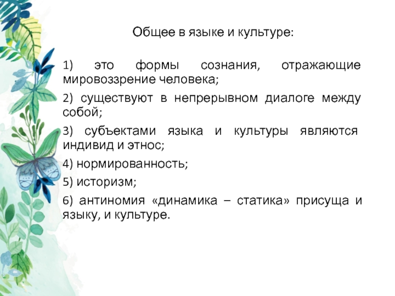 6) антиномия «динамика – статика» присуща и языку, и культуре.