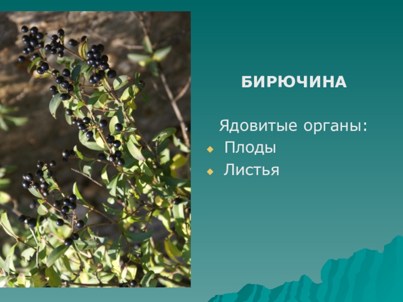 БИРЮЧИНАЯдовитые органы:ПлодыЛистья