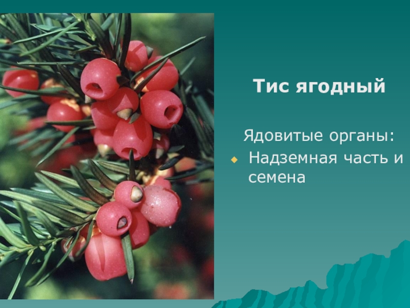 Тис ягодныйЯдовитые органы:Надземная часть и семена