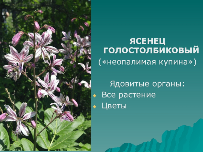 ЯСЕНЕЦ ГОЛОСТОЛБИКОВЫЙ(«неопалимая купина»)Ядовитые органы:Все растениеЦветы