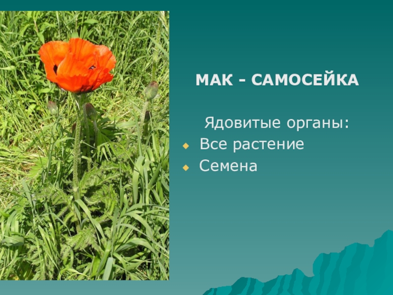 МАК - САМОСЕЙКАЯдовитые органы:Все растениеСемена