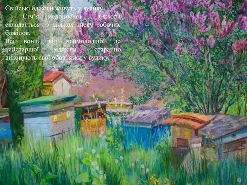 Слайд 3Свійські бджоли живуть у вулику.