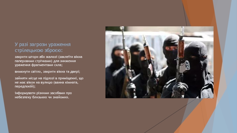 вікна паперовими стрічками) для зниження ураження фрагментами скла;