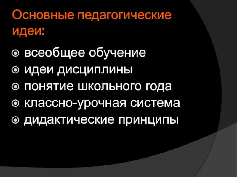 разработал классно-урочную систему обучения, которая заменила индивидуальную. Коменский разработал единую