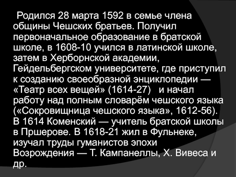 деятель, епископ Чешскобратской церкви, основоположник научной педагогики, систематизатор и популяризатор
