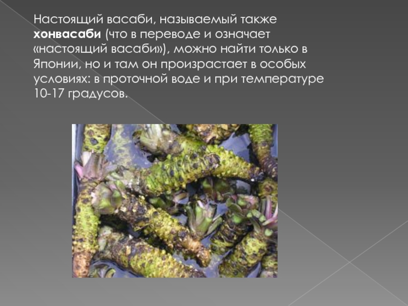 Слайд 17Настоящий васаби, называемый также хонвасаби (что в переводе и означает