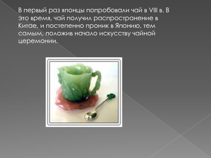 Слайд 26В первый раз японцы попробовали чай в VIII в. В