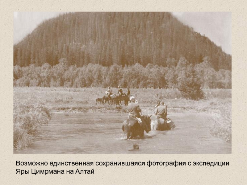Слайд 12Возможно единственная сохранившаяся фотография с экспедиции Яры Цимрмана на Алтай