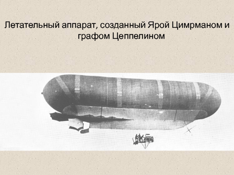 Слайд 9Летательный аппарат, созданный Ярой Цимрманом и графом Цеппелином