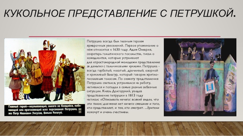 Слайд 10Кукольное представление с Петрушкой.