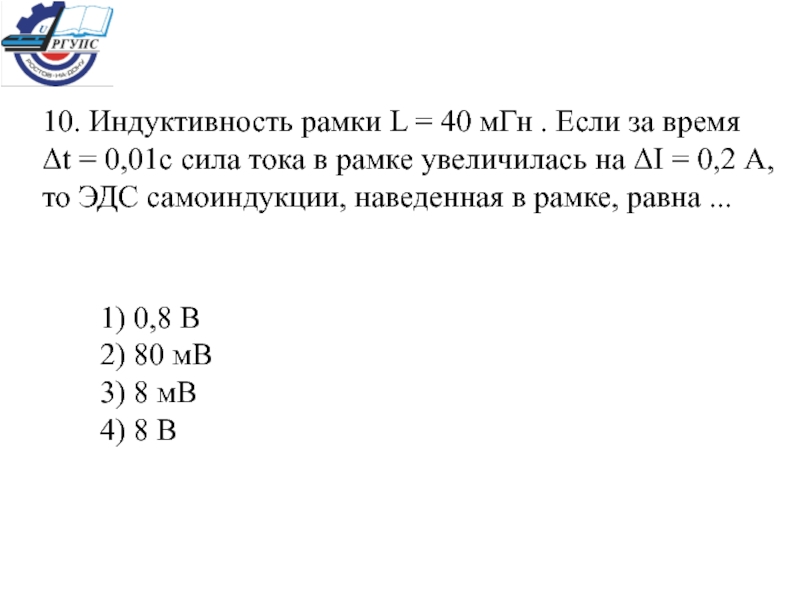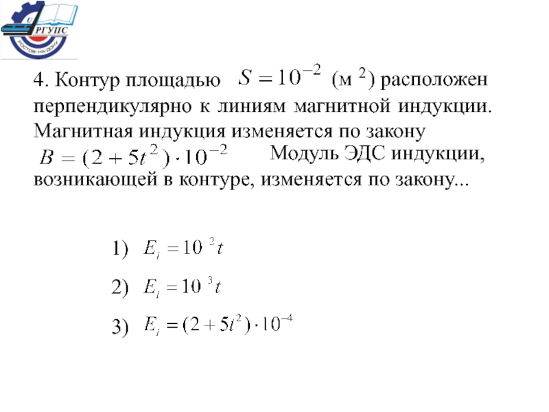 со временем. Индукционный ток в проводнике направлен ... 1) по часовой стрелке