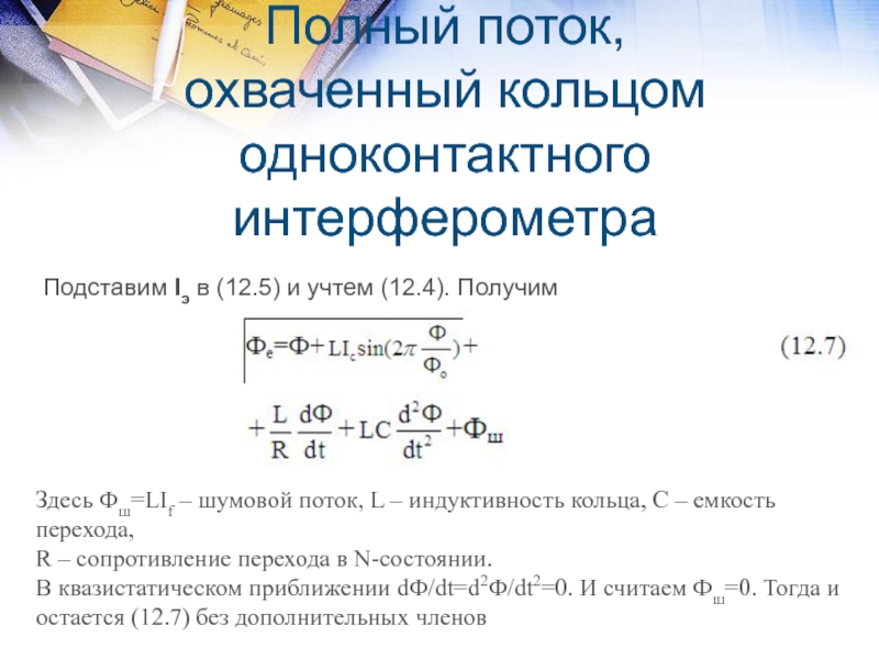 Слайд 7Полный поток, охваченный кольцом одноконтактного интерферометра