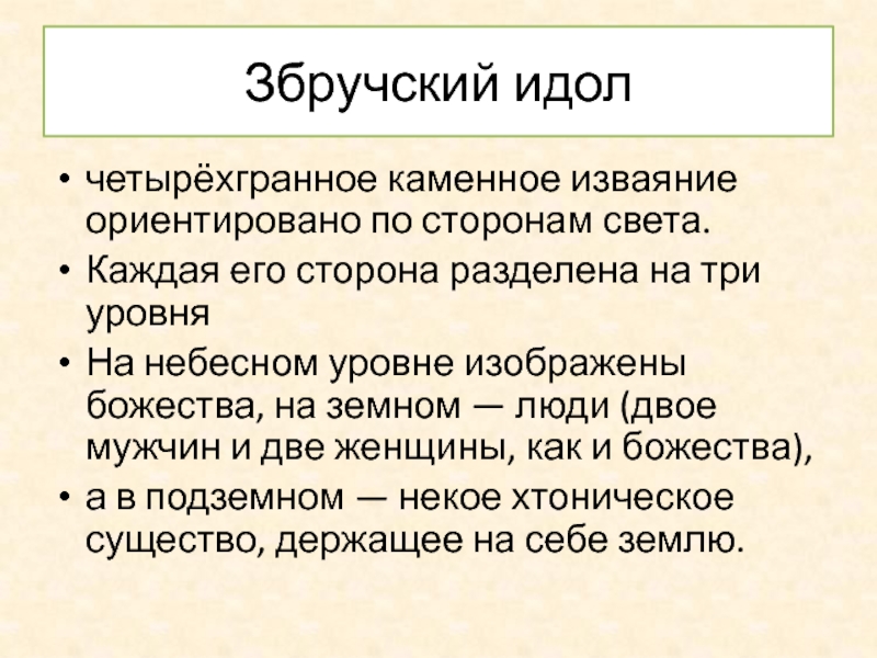 четырёхгранное каменное изваяние ориентировано по сторонам света.