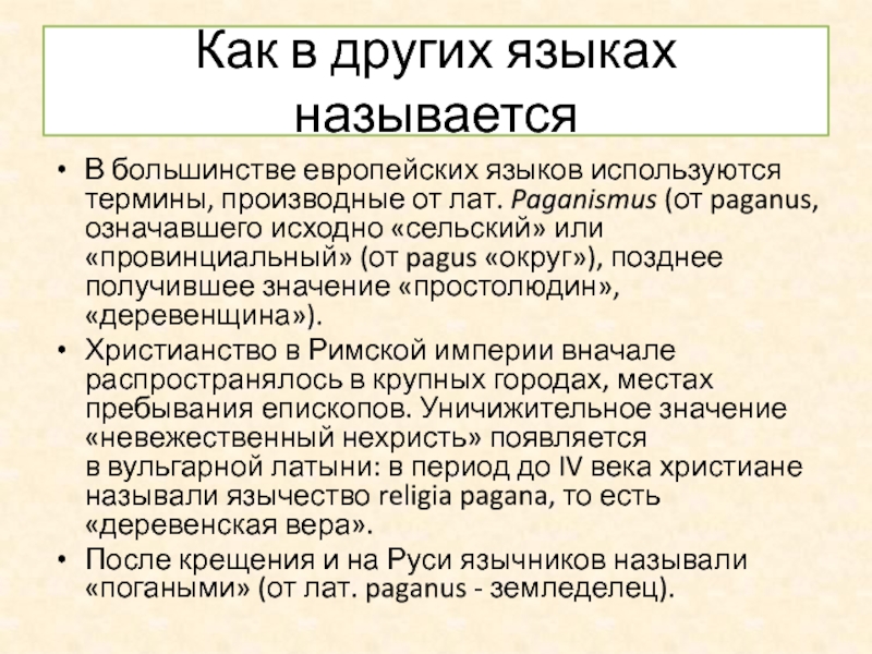 После крещения и на Руси язычников называли «погаными» (от лат. paganus - земледелец).