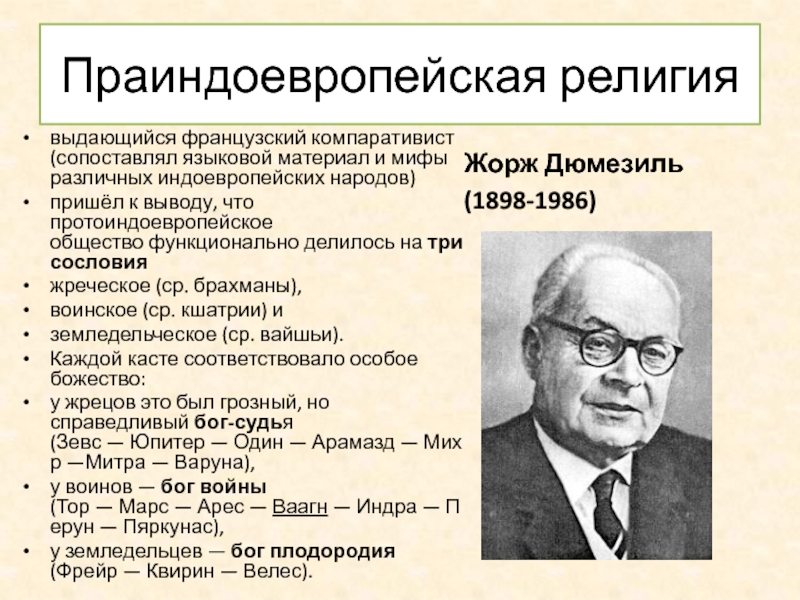 выдающийся французский компаративист (сопоставлял языковой материал и мифы различных индоевропейских
