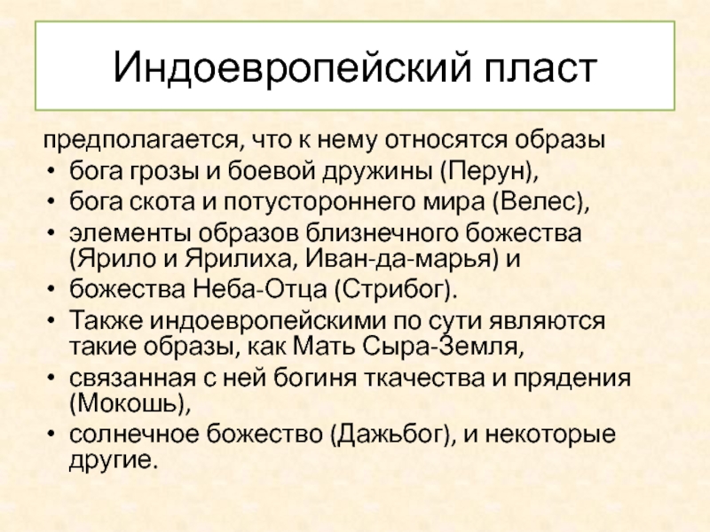 Также индоевропейскими по сути являются такие образы, как Мать Сыра-Земля,