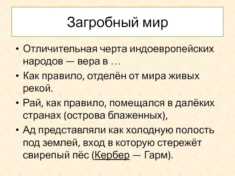 Ад представляли как холодную полость под землей, вход в которую стережёт свирепый пёс (Кербер — Гарм).