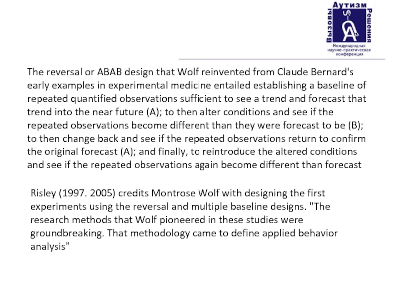 Слайд 31The reversal or ABAB design that Wolf reinvented from Claude
