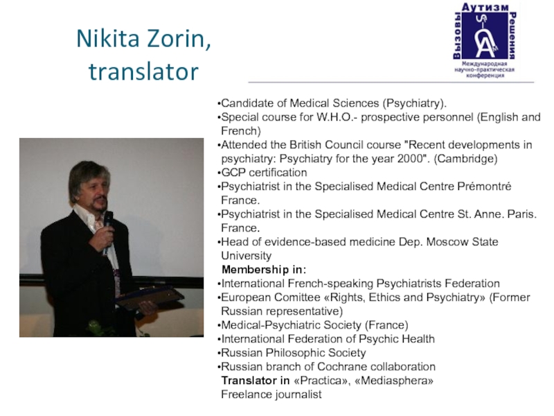 European Comittee «Rights, Ethics and Psychiatry» (Former Russian representative)