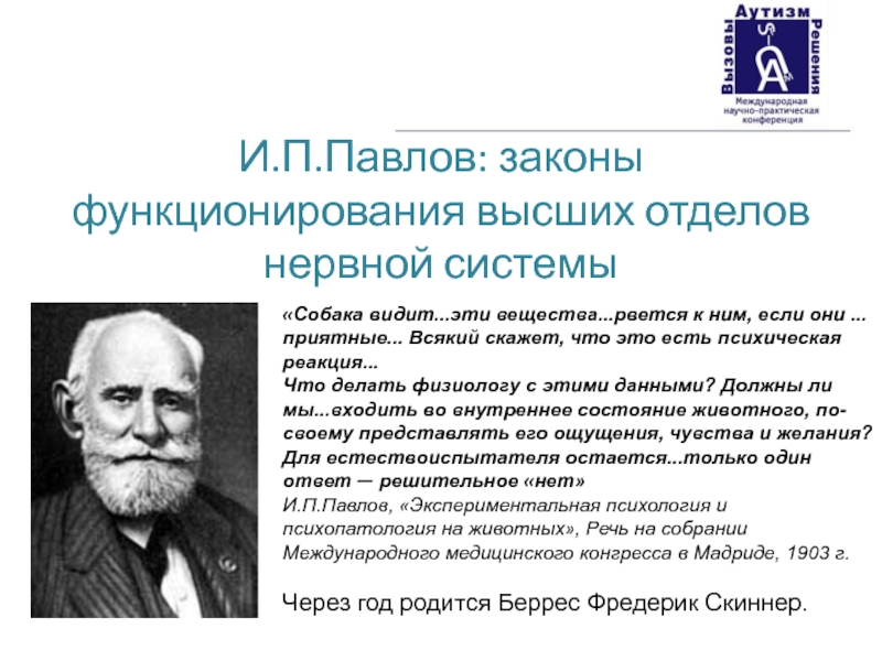 И.П.Павлов, «Экспериментальная психология и психопатология на животных», Речь на собрании Международного медицинского конгресса в Мадриде, 1903 г.