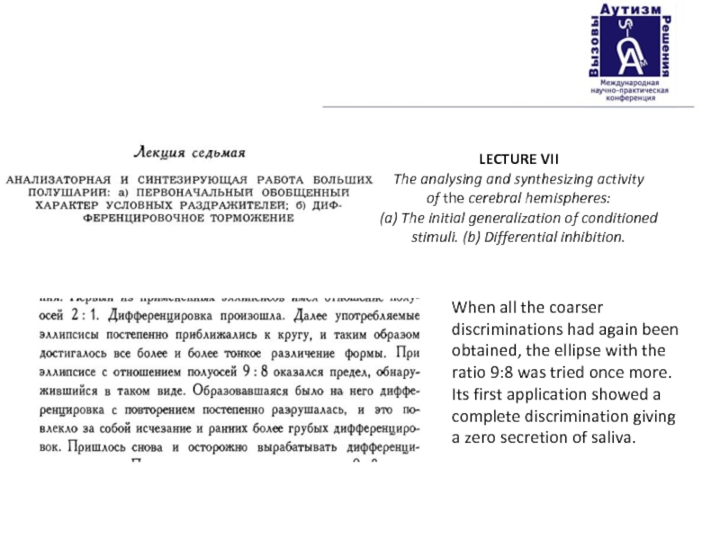 had again been obtained, the ellipse with the ratio 9:8 was tried once more. Its first application showed a complete discrimination giving a zero secretion of saliva.