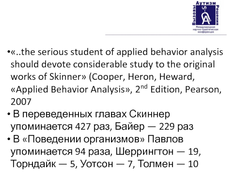 Слайд 9«..the serious student of applied behavior analysis should devote considerable