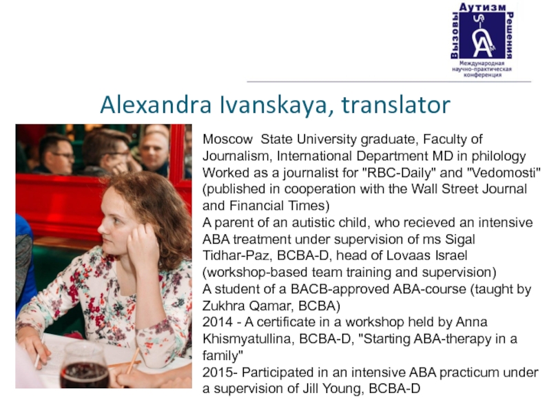 2014 - A certificate in a workshop held by Anna Khismyatullina, BCBA-D, "Starting ABA-therapy in a family"