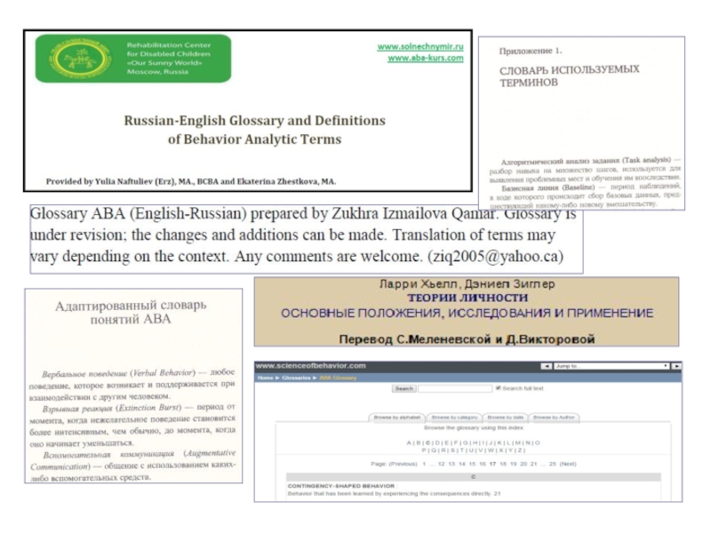 Glossary ABA, Translation to Russian of the glossary of Applied Behavior Analysis for the BACB website