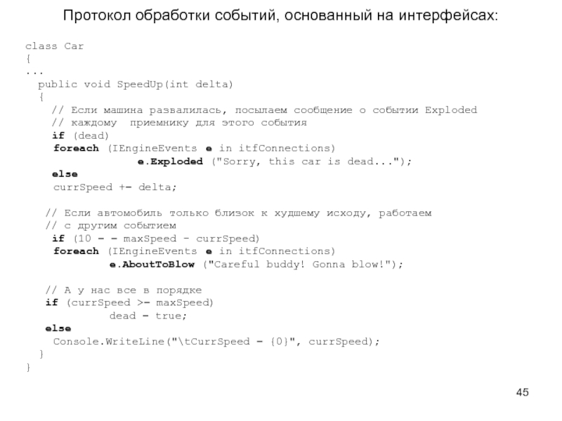Слайд 45Протокол обработки событий, основанный на интерфейсах:
