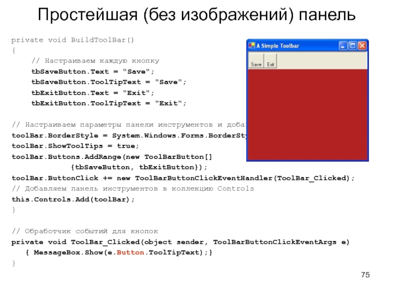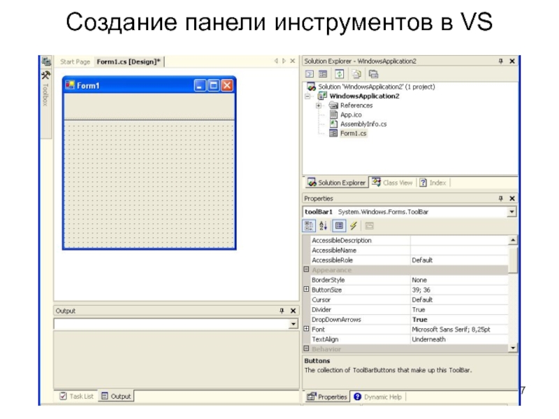 Поместить кнопки в ToolBarButtonCollection объекта ToolBar