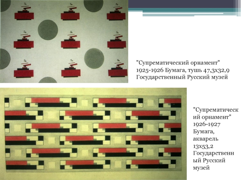 Слайд 48"Супрематический орнамент" 1925-1926 Бумага, тушь 47,3х32,9 Государственный Русский музей