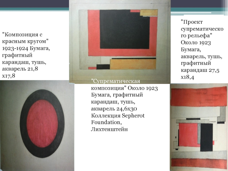 "Композиция с красным кругом" 1923-1924 Бумага, графитный карандаш, тушь, акварель 21,8х17,8