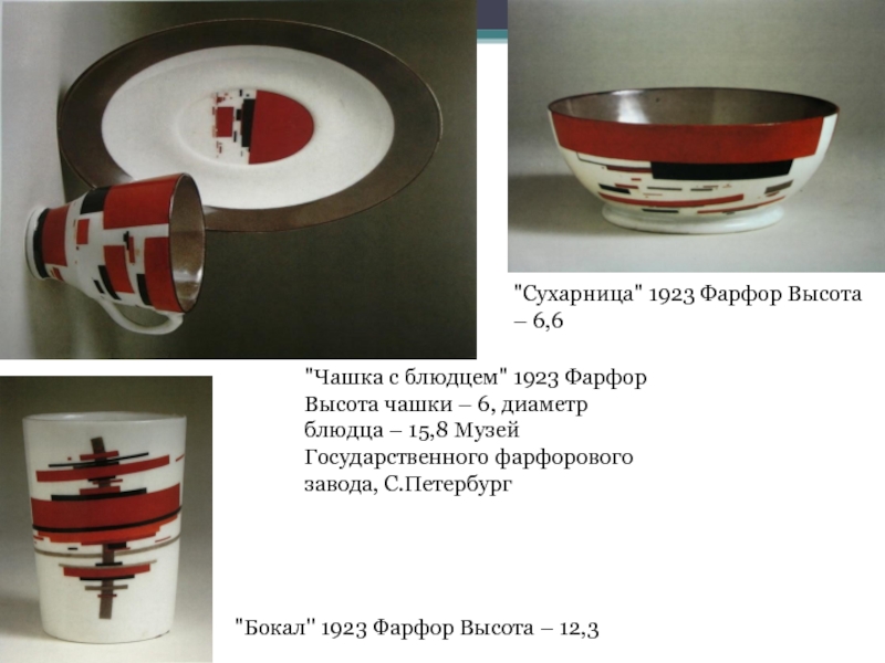 Слайд 41"Чашка с блюдцем" 1923 Фарфор Высота чашки – 7,1, диаметр
