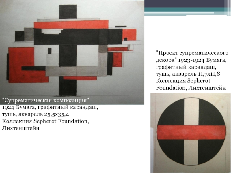 Слайд 42"Супрематическая композиция" Около 1923 Бумага, графитный карандаш, тушь, акварель 24,6х30