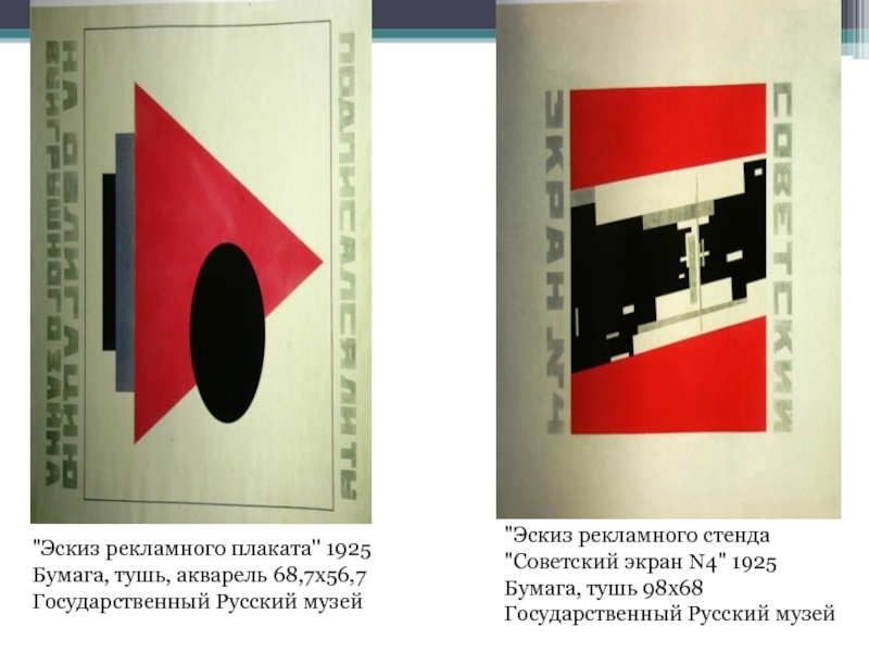 Слайд 46"Декоративный проект рекламного стенда ГИЗ" 1925-1926 Бумага, тушь, акварель, графитный