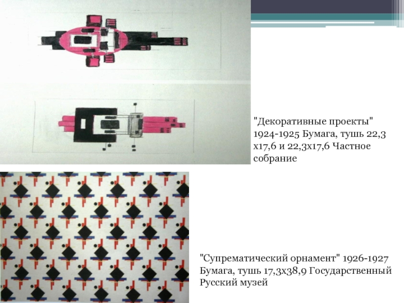 Слайд 47"Декоративные проекты" 1924-1925 Бумага, тушь 22,3х17,6 и 22,3х17,6 Частное собрание