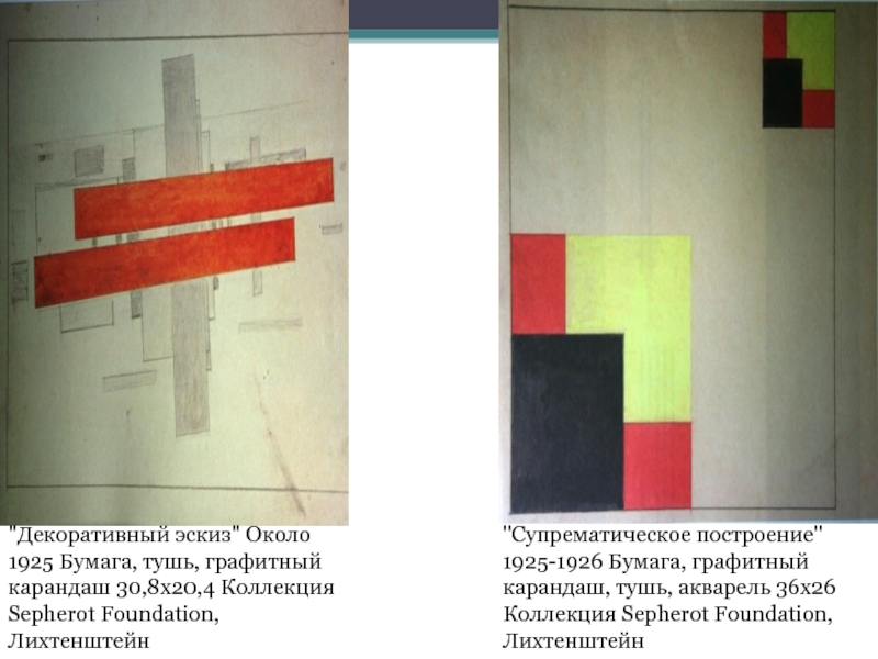 Слайд 44"Проект супрематического декора" 1924 Бумага, гуашь, графитный карандаш, тушь, акварель