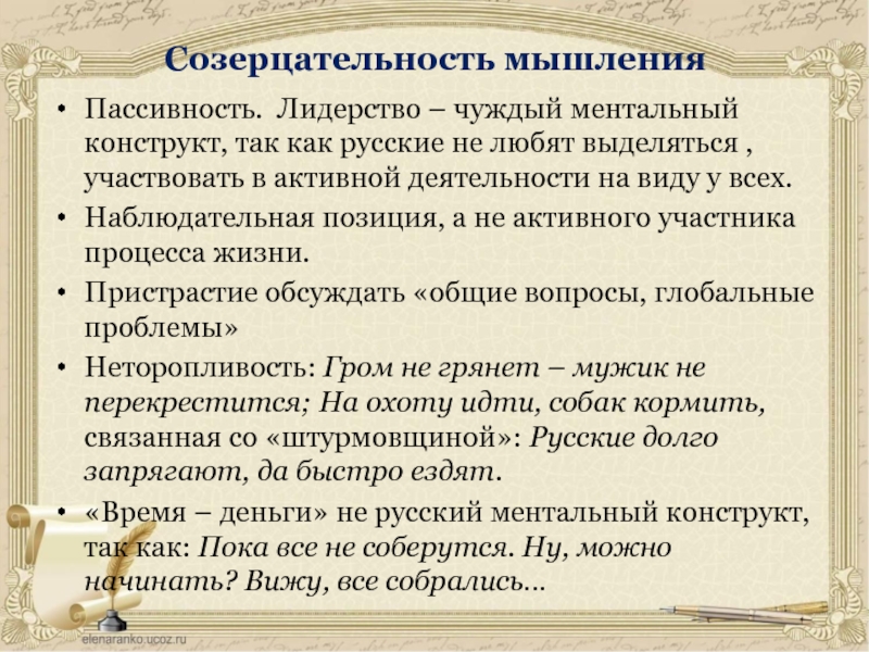 Пассивность. Лидерство – чуждый ментальный конструкт, так как русские