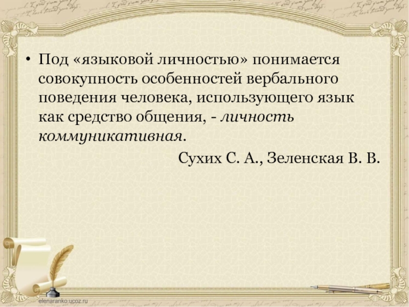 Слайд 2Под «языковой личностью» понимается совокупность особенностей вербального поведения человека, использующего