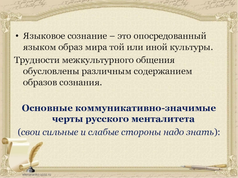 Слайд 13Языковое сознание – это опосредованный языком образ мира той или