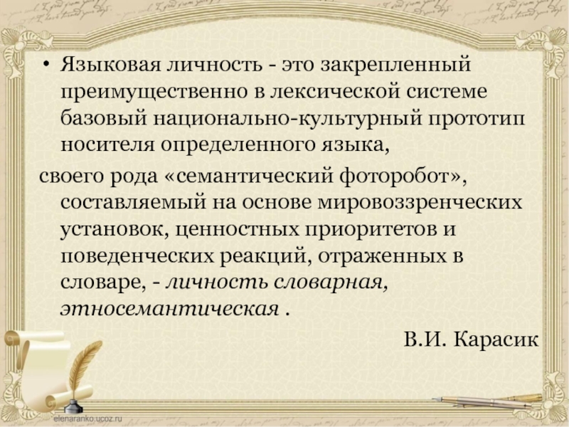 Слайд 3Языковая личность - это закрепленный преимущественно в лексической системе базовый