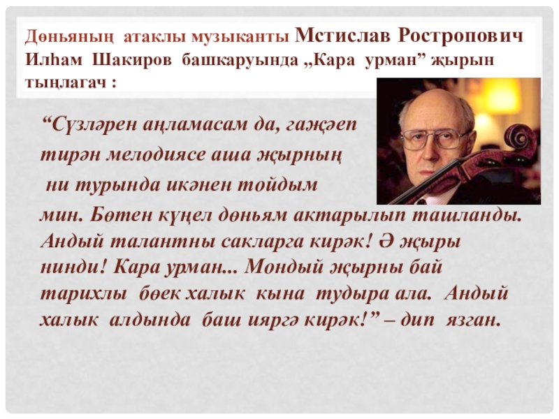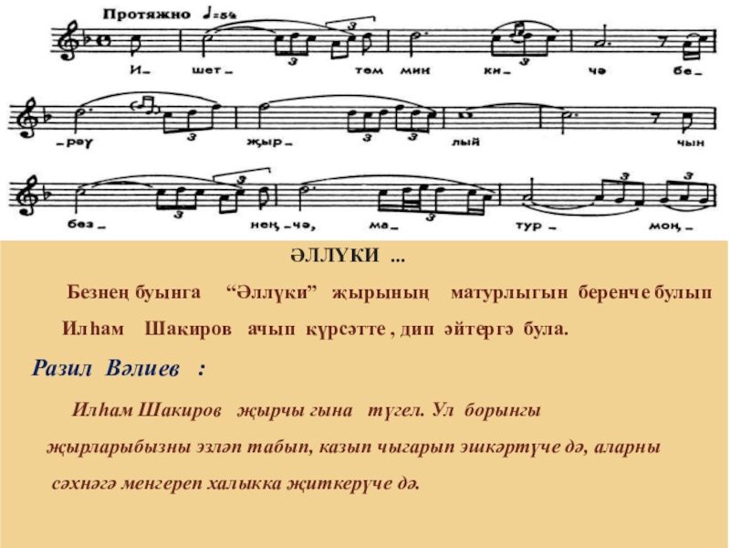 Ул гасырларга бер генә туа торган, тулы мәгънәсендә мәшһүр халык җырчысы”