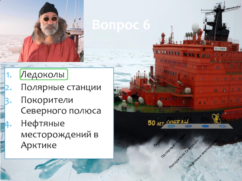 Вопрос 6ЛедоколыПолярные станцииПокорители Северного полюсаНефтяные месторождений в Арктике