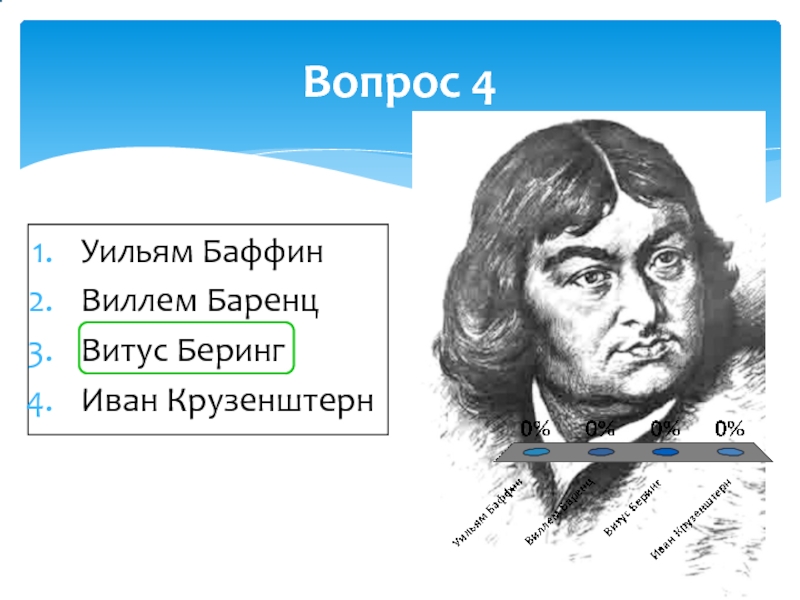 Вопрос 4Уильям БаффинВиллем БаренцВитус БерингИван Крузенштерн