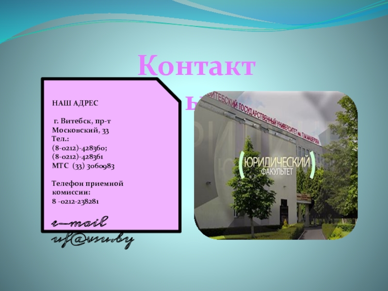 Слайд 24НАШ АДРЕС г. Витебск, пр-т Московский, 33 Тел.: