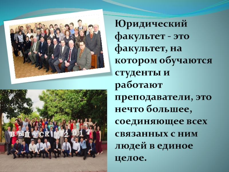 Юридический факультет - это факультет, на котором обучаются студенты и работают преподаватели, это нечто большее, соединяющее всех