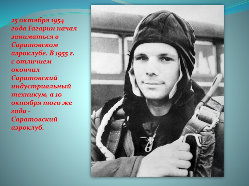 25 октября 1954 года Гагарин начал заниматься в Саратовском аэроклубе.