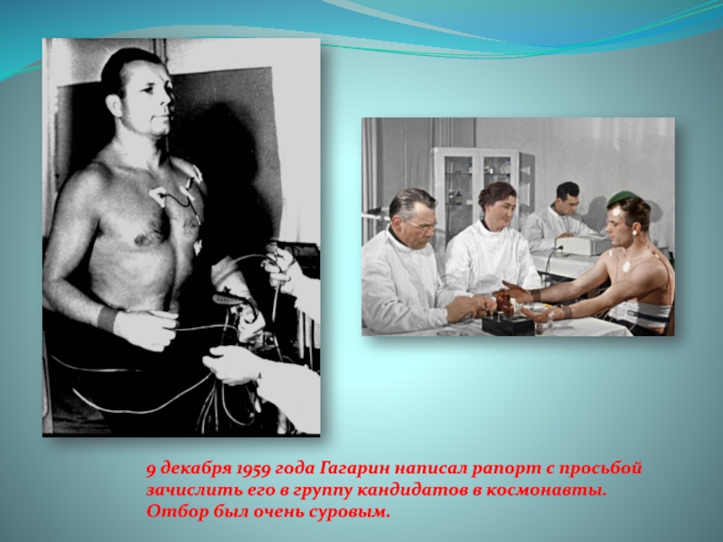 Слайд 179 декабря 1959 года Гагарин написал рапорт с просьбой зачислить