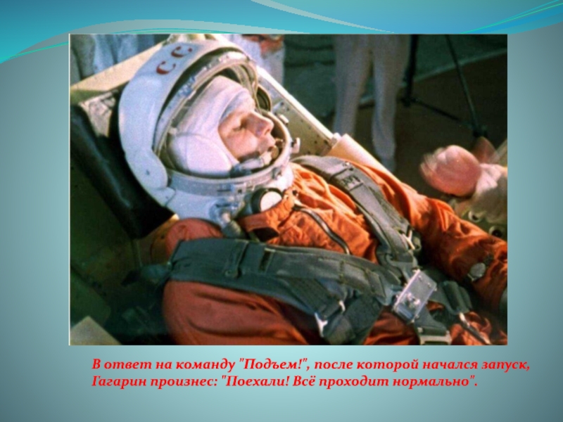 Слайд 21В ответ на команду "Подъем!", после которой начался запуск, Гагарин