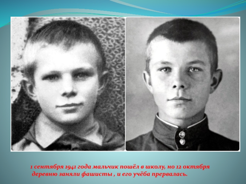 Слайд 51 сентября 1941 года мальчик пошёл в школу, но 12
